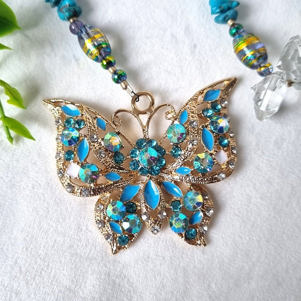 Blue Glass Beads, Turquoise Chip Beads, combined with a sparkly Blue Butterfly Charm will encourage you to find joy in the life/lives that surrounds you.