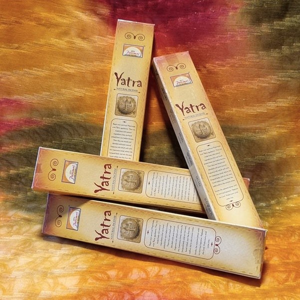 Yatra Incense is a nag champa blend that has the typical champa sweetness and floral fragrance, with a unique character. It will assist in calming the impetuous mind, relieve the fatigued body, and stir the soul.